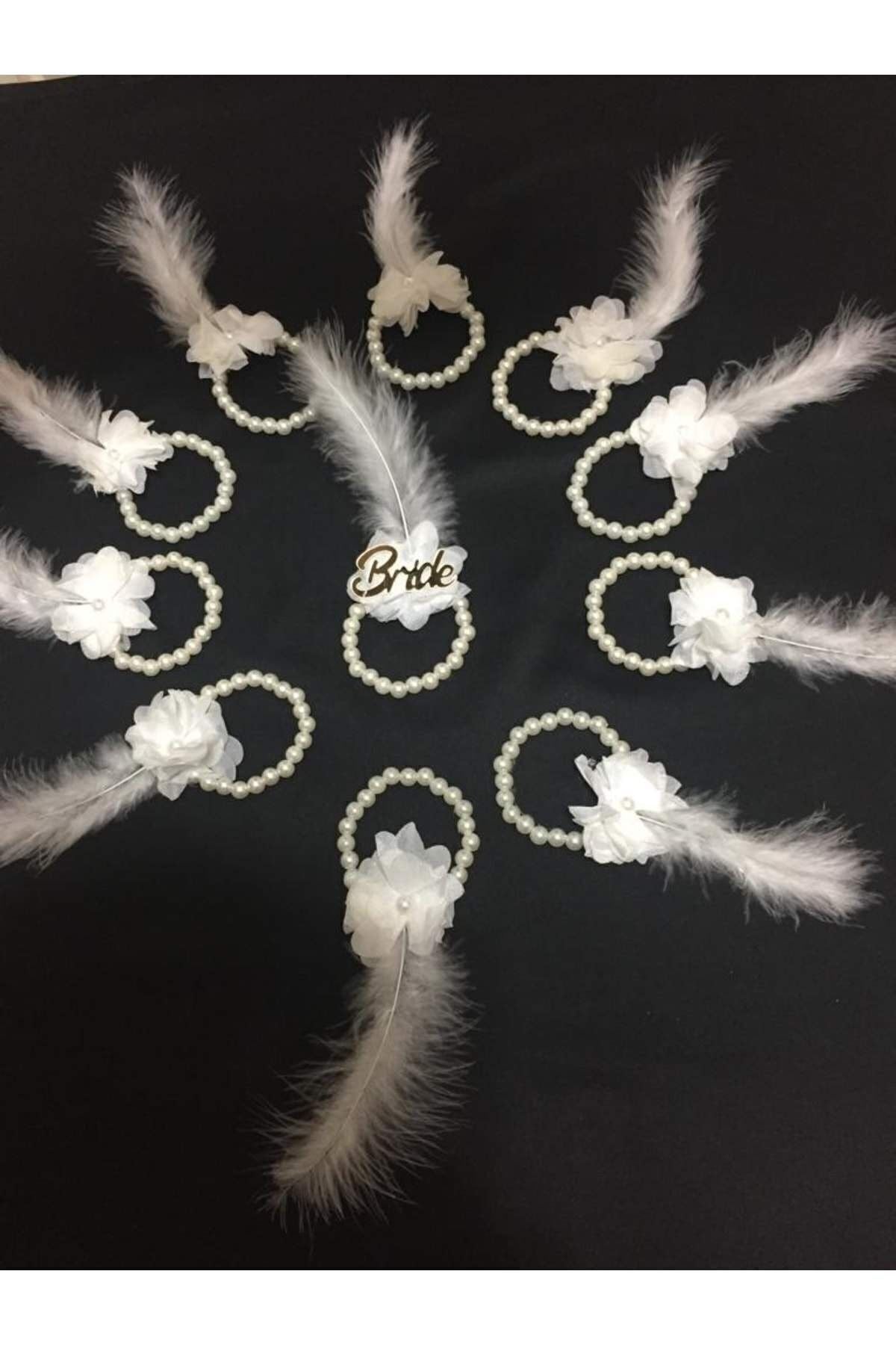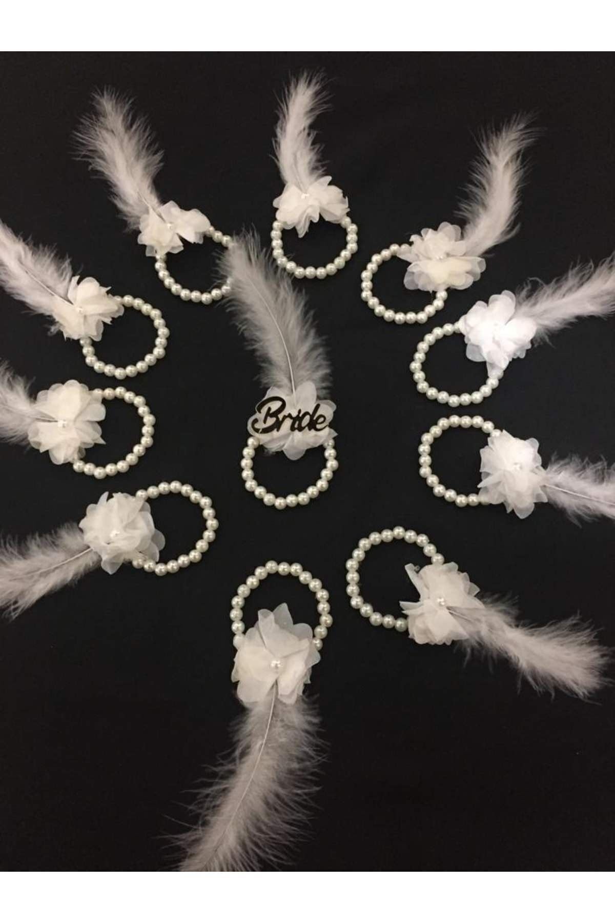 1 İncili Bride Bileklik 10 İncili Nedime Bilekliği Seti (Beyaz Gold Gelin Kına Gecesi Bekarlığa Veda)