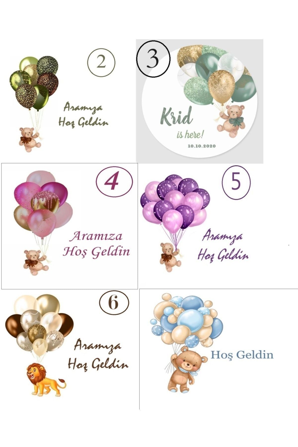 BALONLU AYICIK BEBEK ÇİKOLATASI ETİKETİ HOŞ GELDİN BEBEK ETİKETİ 3,5CM 96 ADET