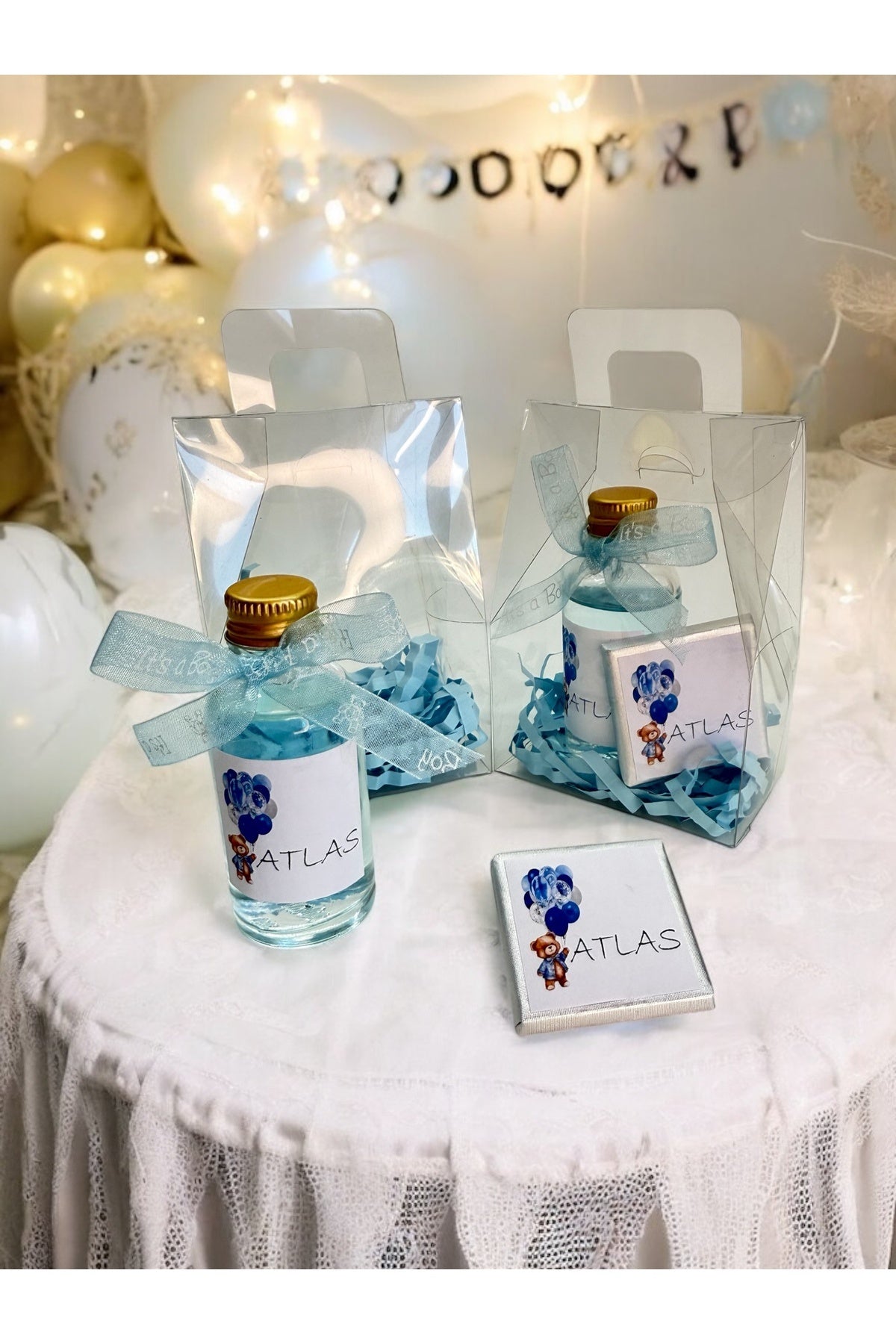 İsme Özel Çikolata-Kolonya-Çantalı Set 10 Adet (Doğum, Doğum Günü, Mevlit Hediyelik)