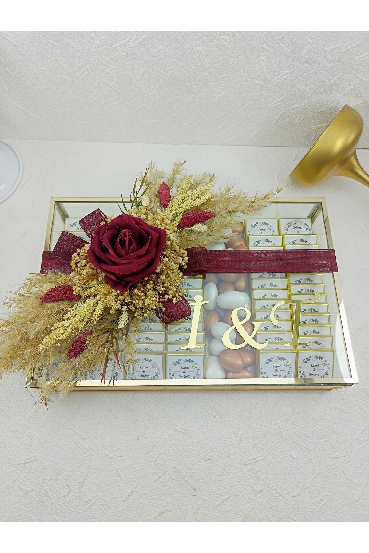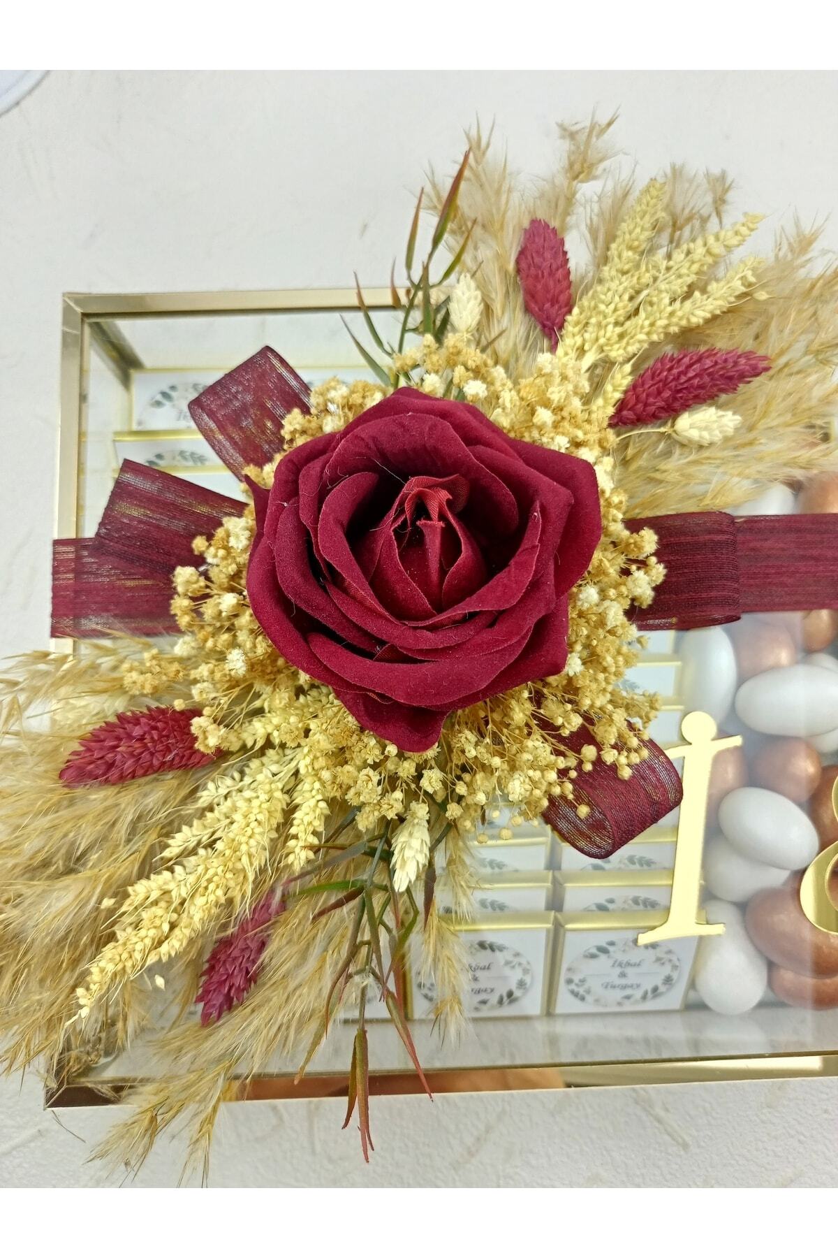 Cam Kutu Kırmızı Gül Nişan- Söz-Kız İsteme Çikolatası
