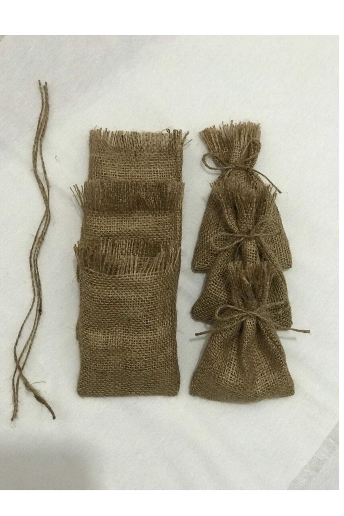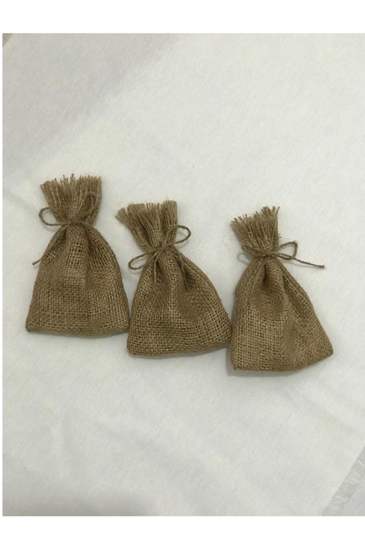 Hasır Jüt Kese 10 X 15 Cm Ebatlarında 3 Adet Boş Çuval Kumaşından Kese Ipli, Hediyelik, Kına, Düğün