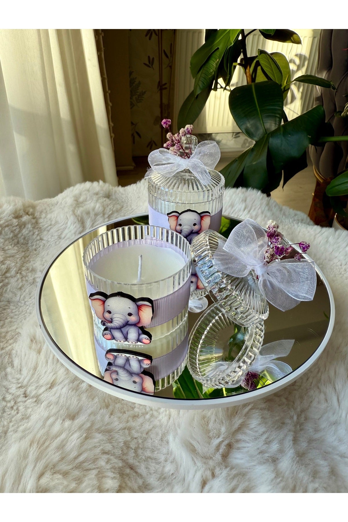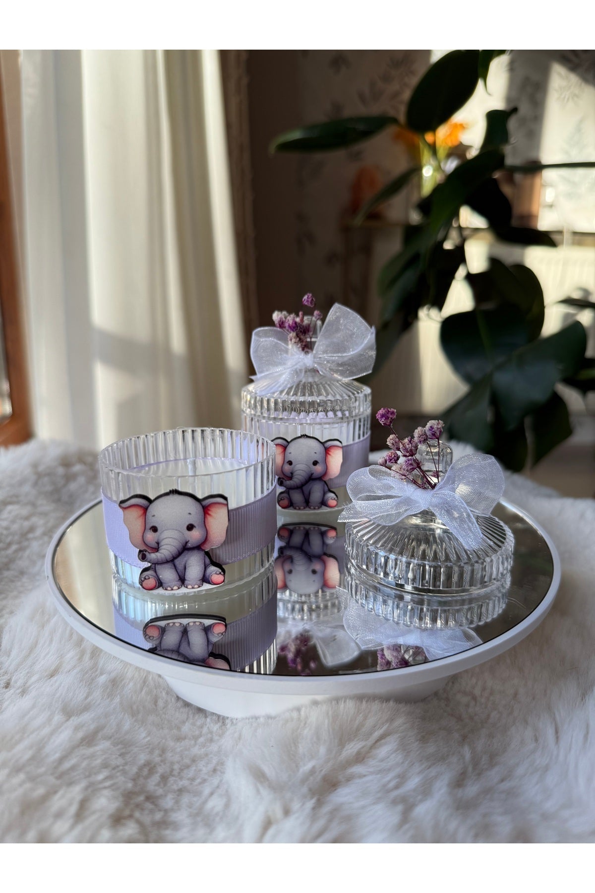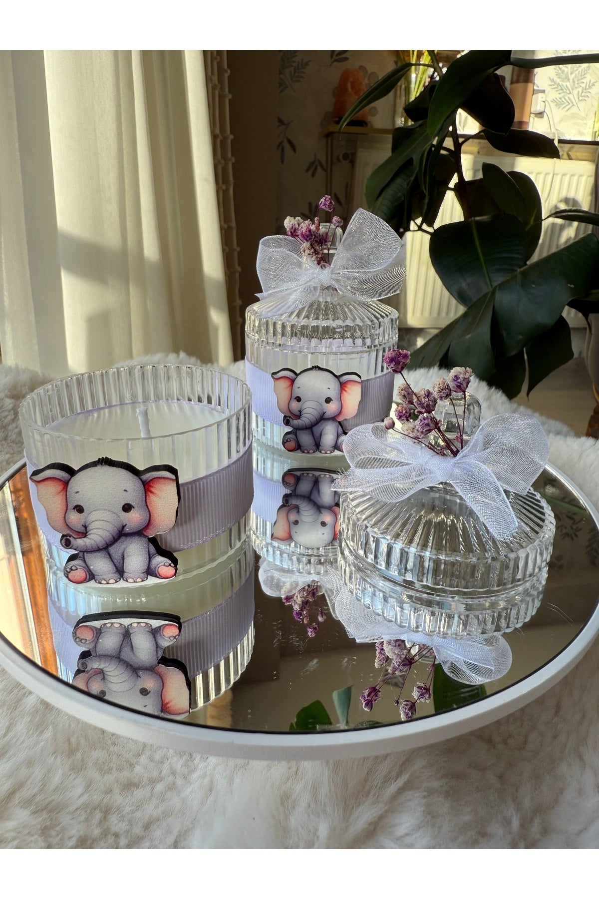 İsme Özel Hediyelik Fil Desenli Bebek Mum 10 Adet (Doğum, Doğum Günü, Mevlit Hediyelik)