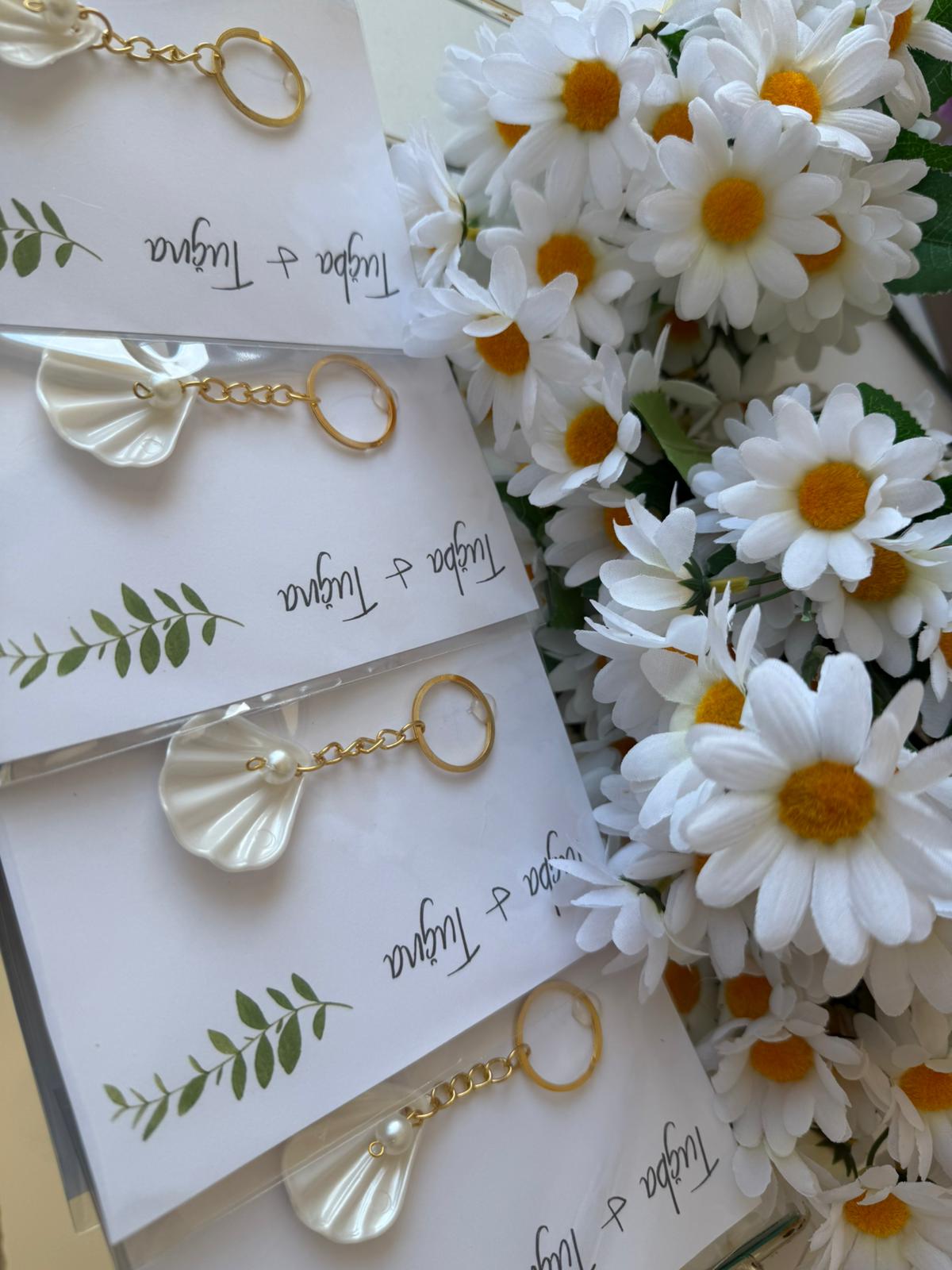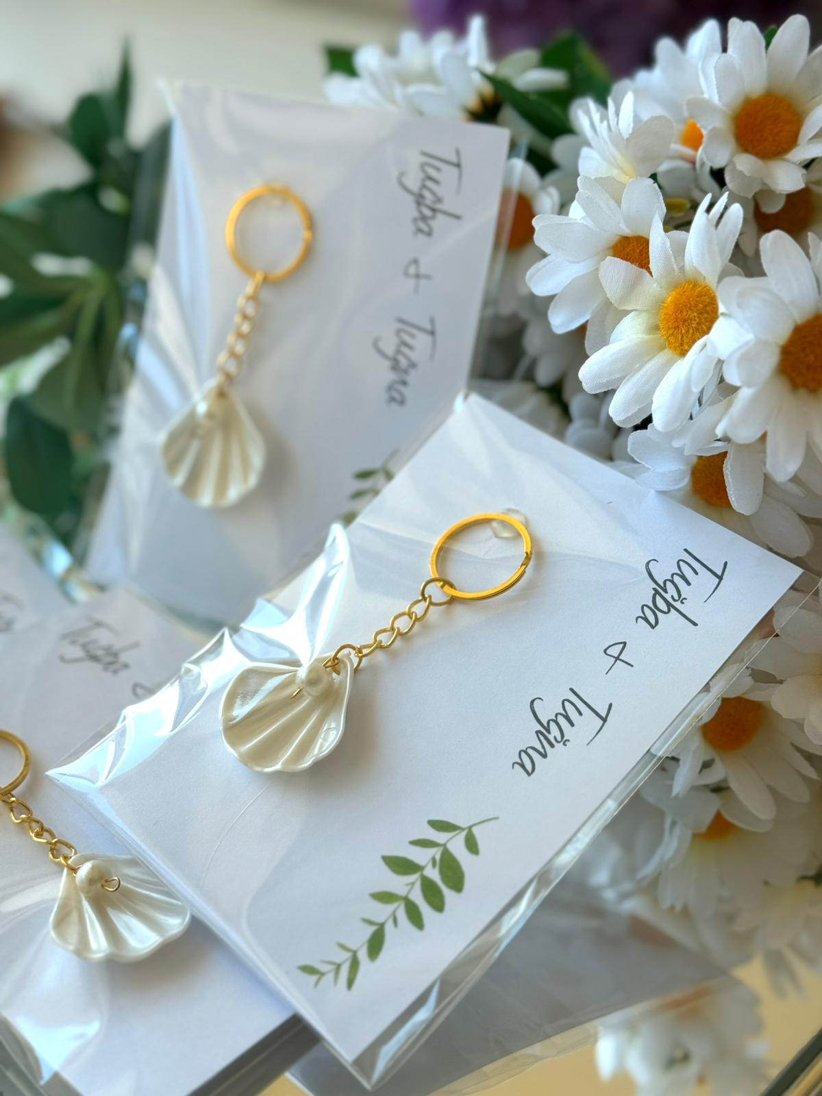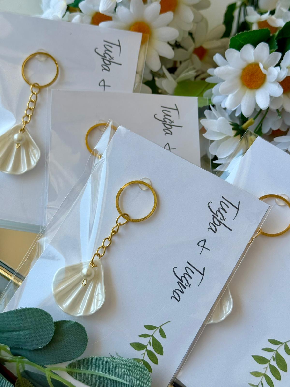 Özel günlerinize şıklık katacak istiridye tasarımlı bride to be anahtarlıklar, misafirlerinize unutulmaz bir hediye olacak!
