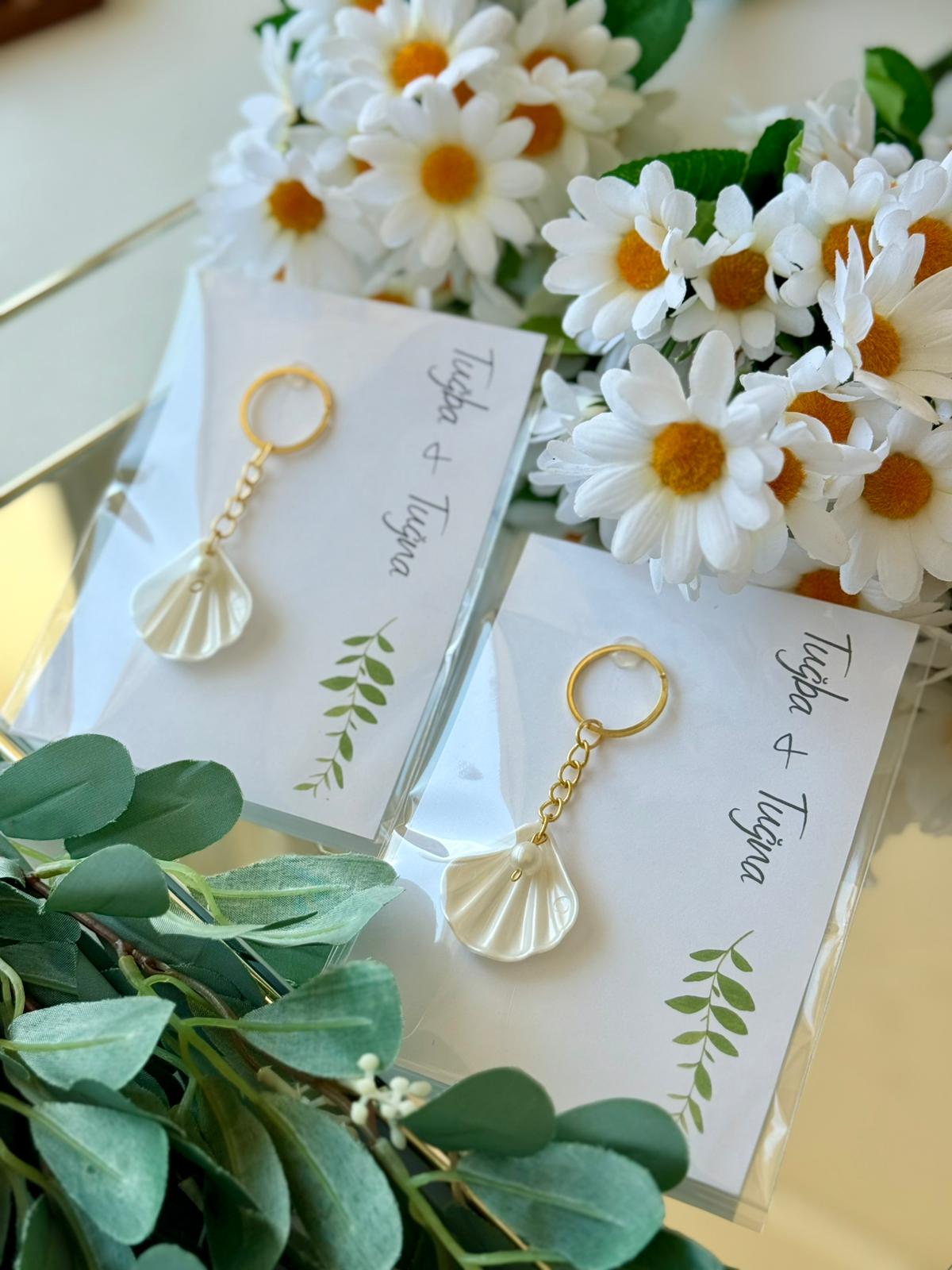 💝 Sevdiklerinize hem şık hem de hatırası kalacak bir hediye vermek istiyorsanız, bu zarif istiridye anahtarlıklar tam size göre!
