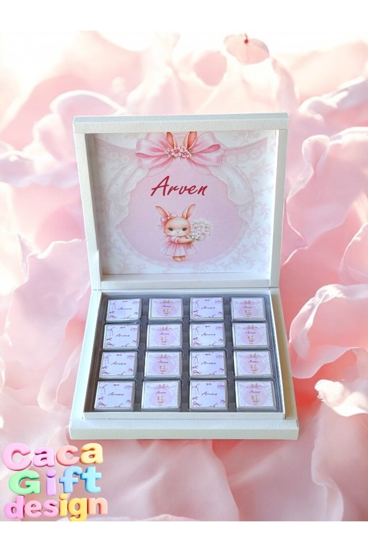 İsme Özel Fiyonklu Tavşan Kız Bebek Çikolatası 48 Adet (Doğum, Doğum Günü, Mevlit Hediyelik)