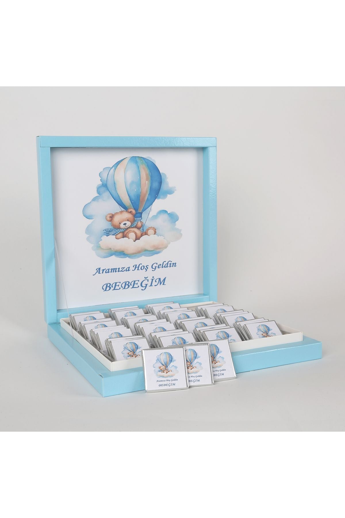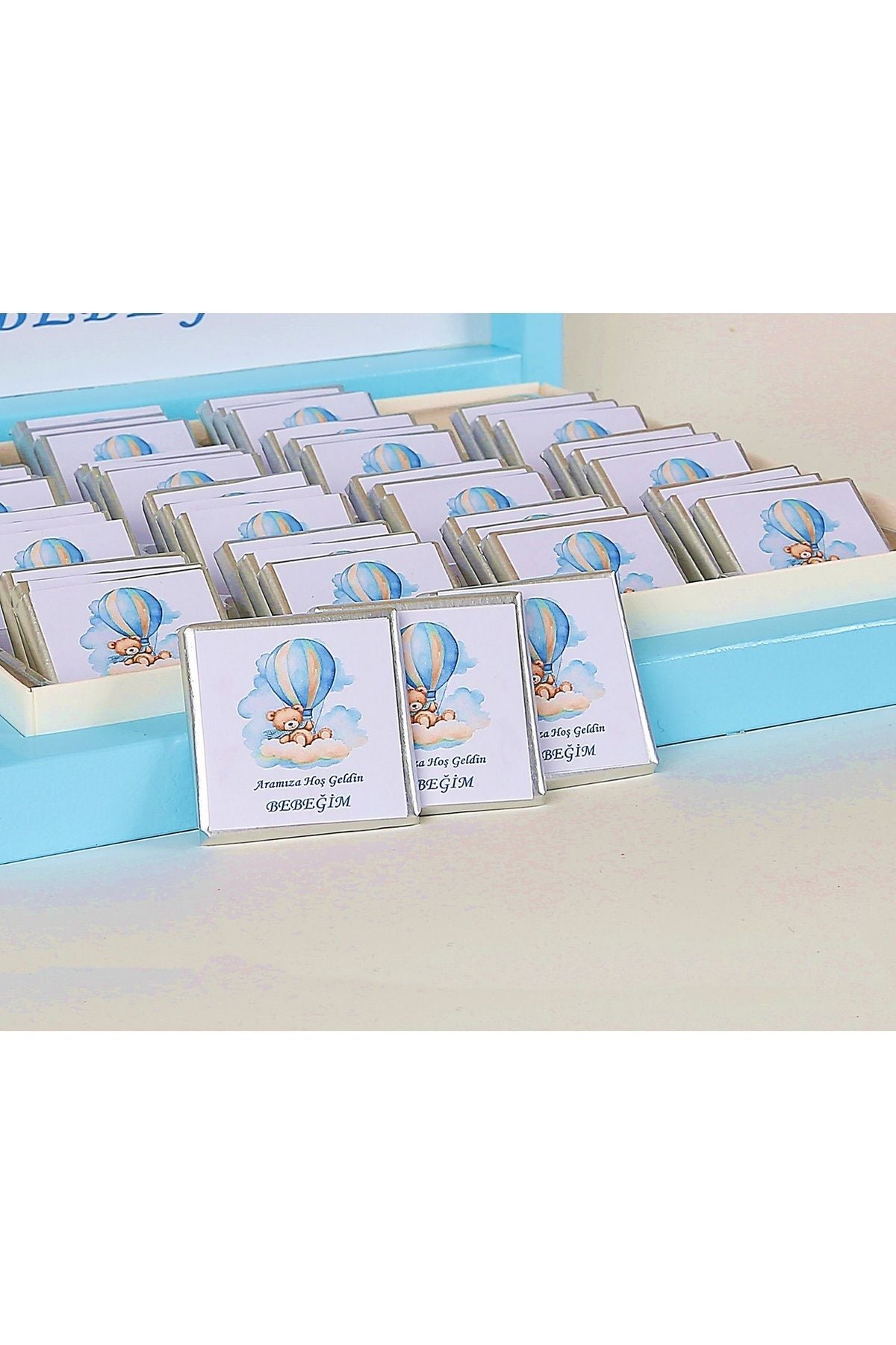 İsme Özel Uçan Balon Modelli Erkek Bebek Çikolatası 48 Adet (Doğum, Doğum Günü, Mevlit Hediyelik)