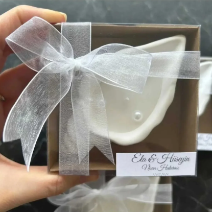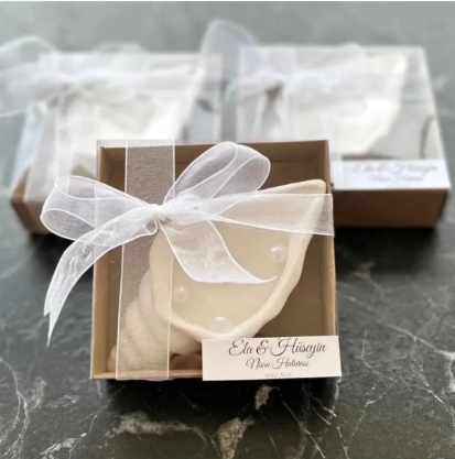 Kutulu 10 Adet Süslenmiş İstiridye Mum (Nikah, Nişan, Söz, Düğün )