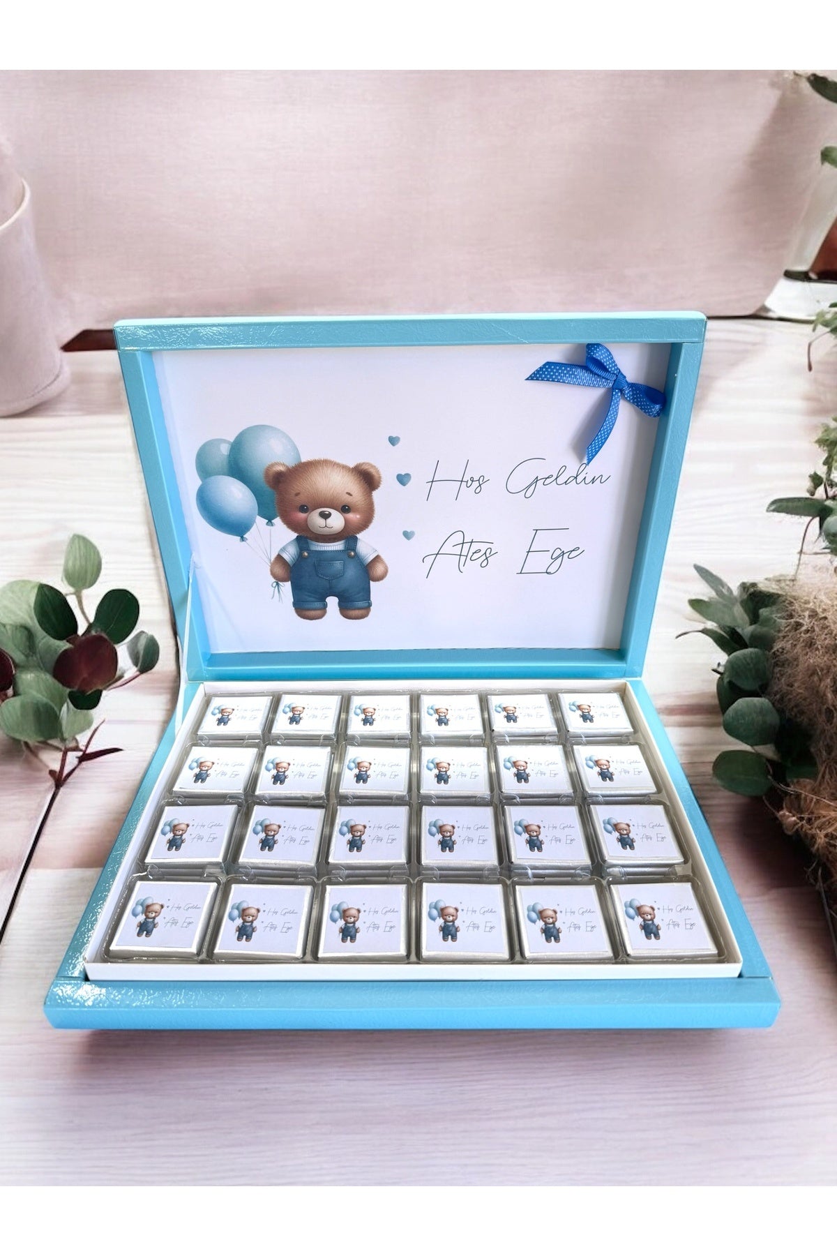 İsme Özel Balon Modelli Erkek Bebek Çikolatası 72 Adet (Doğum, Doğum Günü ,Mevlit Hediyelik)