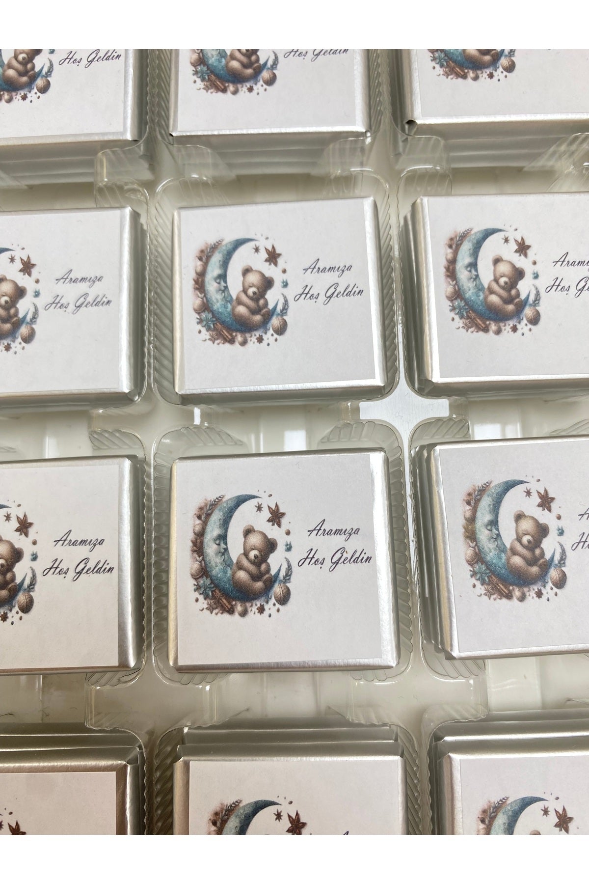 İsme Özel Ayıcık Erkek Bebek Çikolatası 72 Adet (Doğum, Doğum Günü, Mevlit Hediyelik)