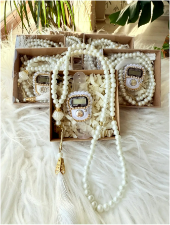 Pearl Prayer Beads & Digital Tasbih Counter Set (10 pcs) – Mevlid & Umrah Favor
