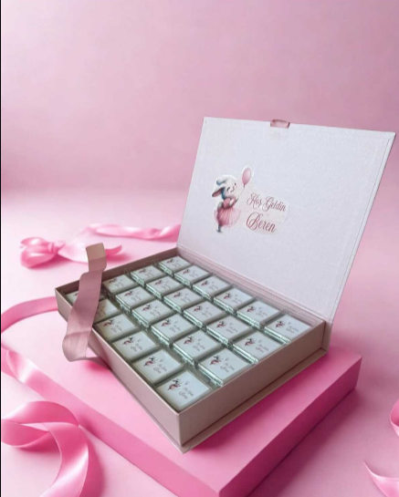 İsme Özel Tavşanlı Bebek Çikolatası 72 Adet (Doğum, Doğum Günü ,Mevlit Hediyelik)
