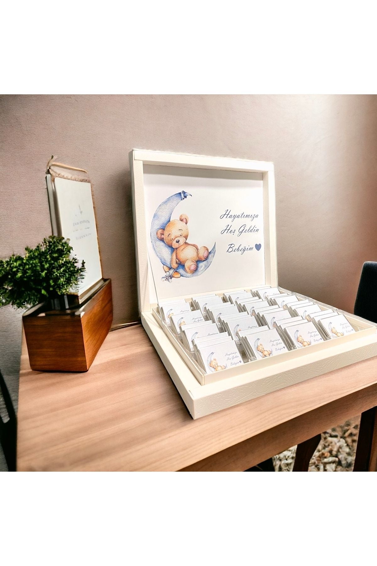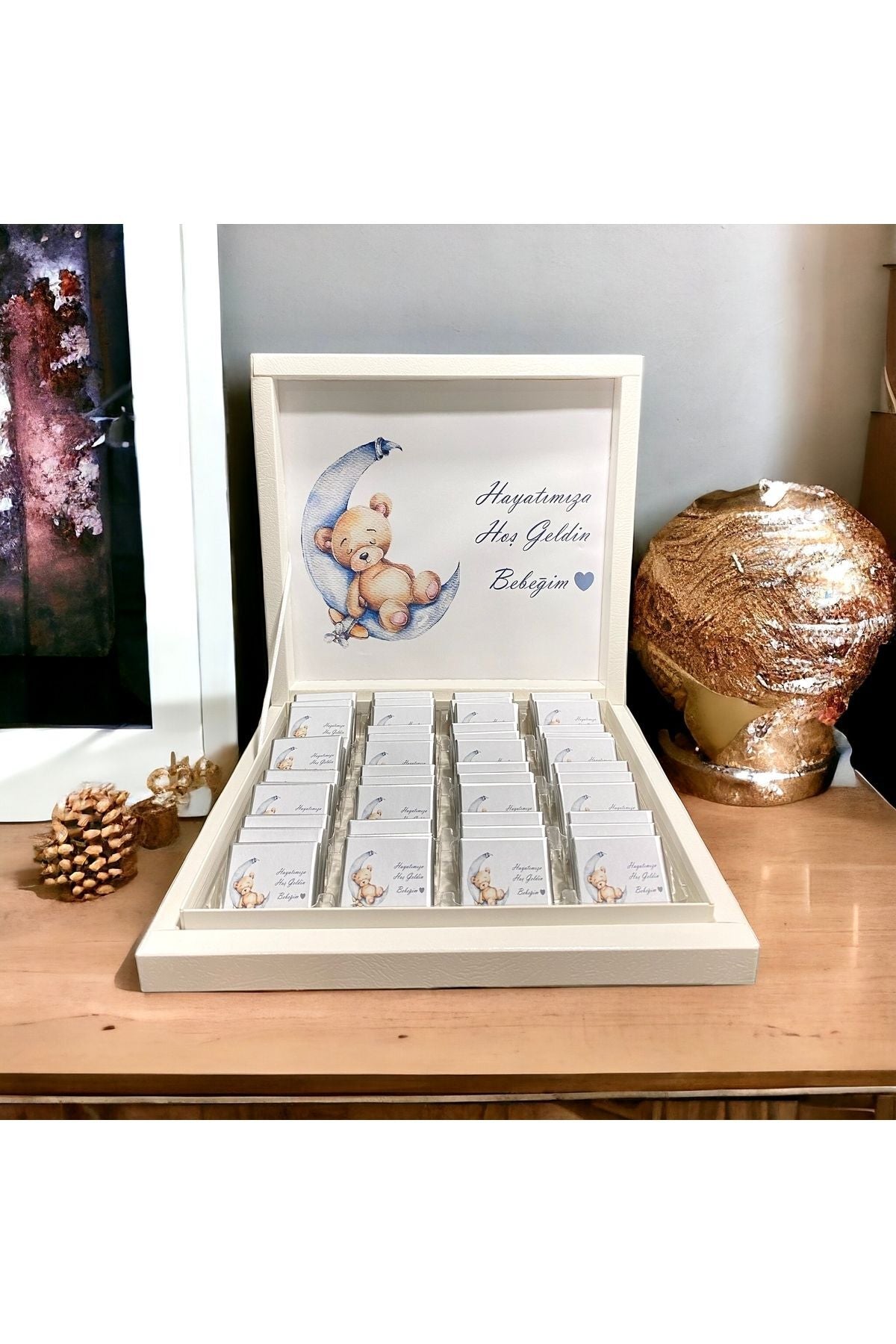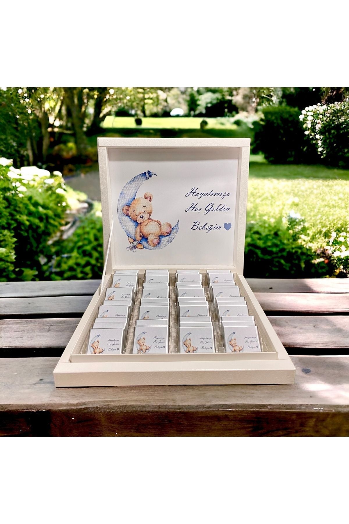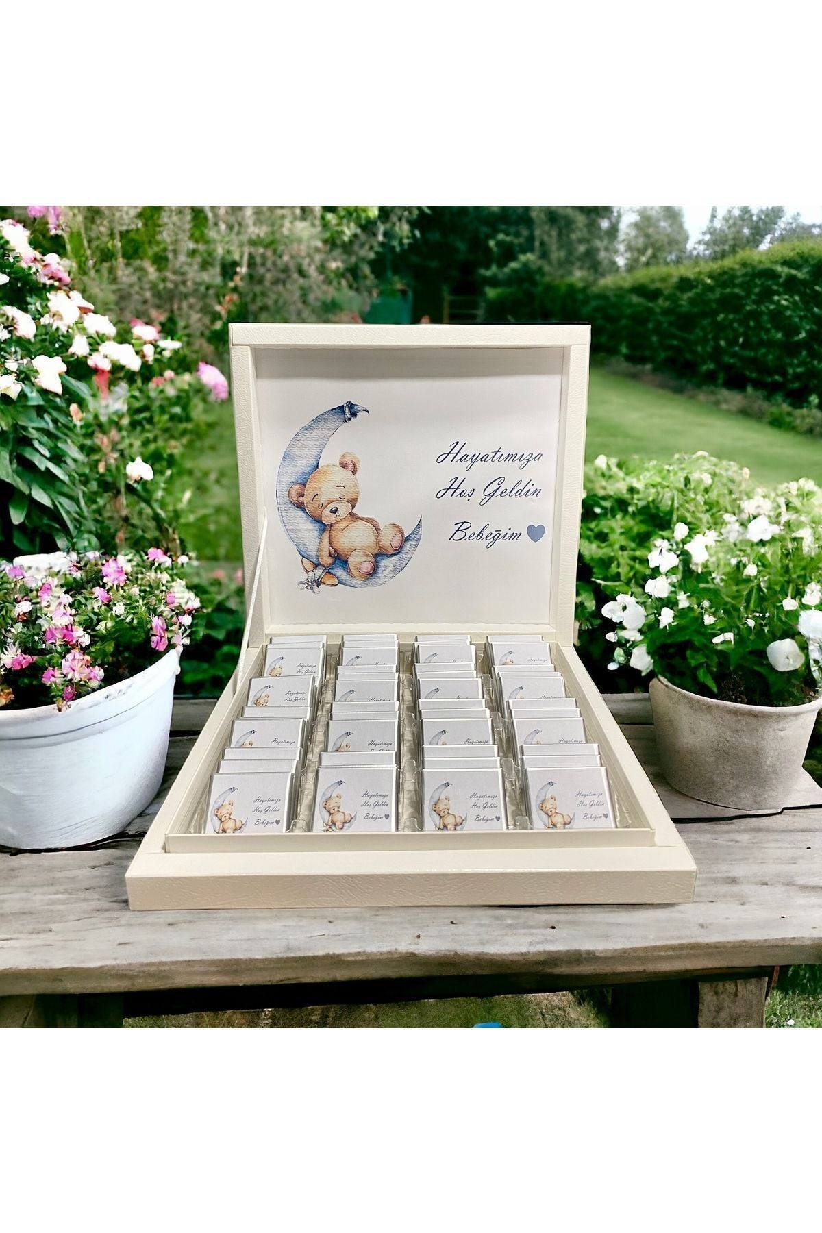 İsme Özel Ayıcık-Ay Erkek-Kız Bebek Çikolatası 48 Adet (Doğum, Doğum Günü, Mevlit Hediyelik)
