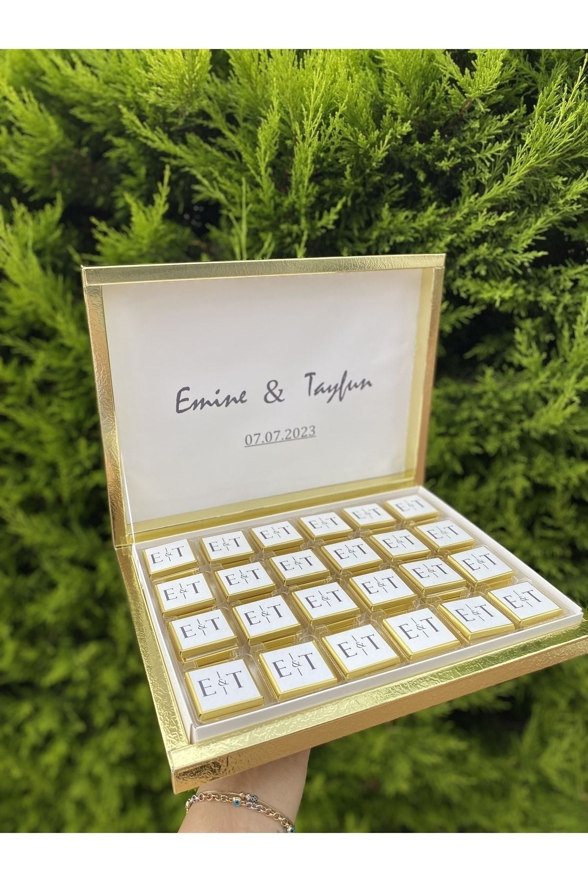 İsme Özel Gold Kutulu (Nişan, Söz, Kız İsteme, Nikah Çikolatası) 72 Adet