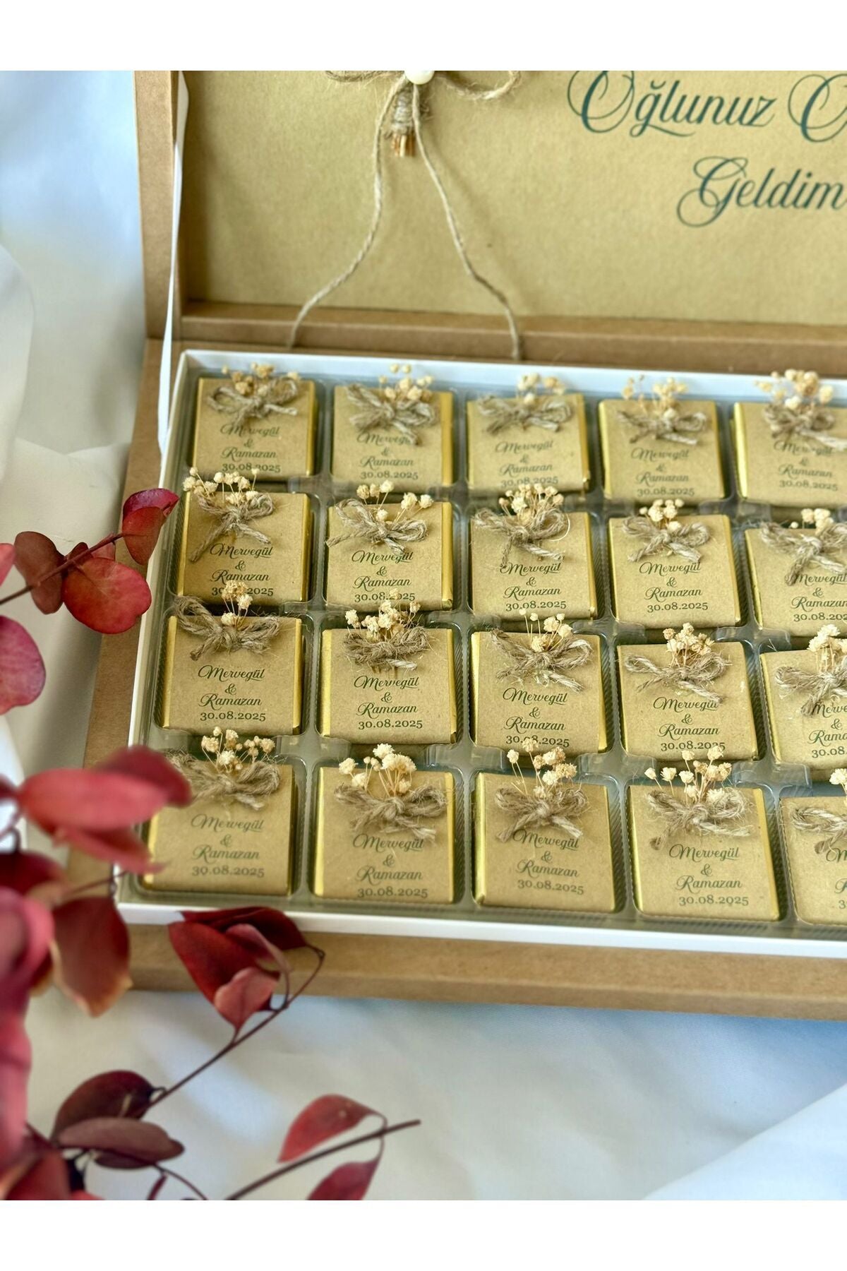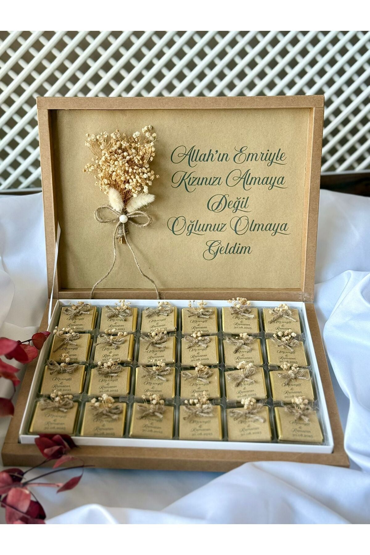 İsme Özel Kız İsteme Çikolatası 48 Adet (Söz, Nişan, Nikah, Düğün, Doğum)
